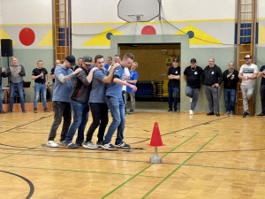 Ein besonderer Höhepunkt des Aktionstags war die Vereine-Challenge, an der insgesamt neun Günztaler Vereine und Gruppen teilnahmen. Der TSV war mit den Abteilungen Karate und Tennis vertreten. Als weitere Gruppen waren der Gemeinderat Günzach, der Schützenverein Immenthal, die Freiwillige Feuerwehr, der MSC-Litzen, der Fanclub „Rot-Weiß Günztal“, der Musikverein Günzach sowie die Jungmusiker-Gruppe „Notenflitzer“ am Start. In diesem Jahr galt es herauszufinden, welche Mannschaft zu viert auf einem Paar Ski am schnellsten unterwegs war. Unter lautstarker Anfeuerung der Zuschauer lieferten sich die Teams einen packenden Wettkampf. Am Ende setzte sich die Freiwillige Feuerwehr Günzach mit der schnellsten Zeit durch und durfte sich über den verdienten Sieg freuen.