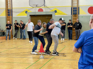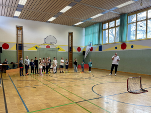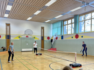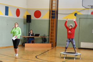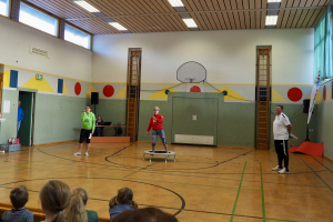 Pickleball, die schnell lernbare Trendsportart wurde von den beiden TSV-Vorstandsmitgliedern Jürgen Frick und Simon Böck präsentiert. Pickleball ist eine Mischung aus Tennis, Badminton und Tischtennis und macht einfach richtig viel Spaß. Ebenso überzeugte Balance-Swing TM – ein rhythmisch-sportliches Ganzkörpertraining auf dem Mini-Trampolin, das sich besonders durch seine Mischung aus Balance, Bewegung und Spaß auszeichnet. Carina Wirthgen erklärte ausführlich diese neue Trainingsmethode und lud anschließend zum Probe-Swingen ein.