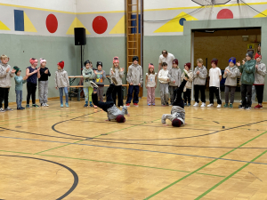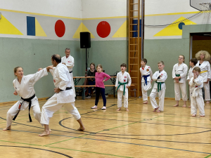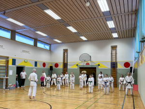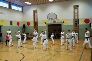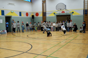 Schon zu Beginn war die Halle gut gefüllt. Beim Kinderturnen konnten die jüngsten Sportfans nach Herzenslust klettern, balancieren und springen. Die jungen Spieler der Hockey-Abteilung zeigten spannende Spiele, wobei jedes Tor von den Besuchern bejubelt wurde. Die Karate-Abteilung demonstrierte Techniken aus der Kampfkunst und erklärte eindrucksvoll, wie Körperbeherrschung und Konzentration Hand in Hand gehen. Mitreißend ging es bei der Break-Dance-Gruppe zu, die mit ihrer dynamischen Show begeisterte. Moderator und Vereinsvorstand Andi Fleschutz stellte die einzelnen Gruppen vor und gab viel Informationen an die Interessierten weiter.